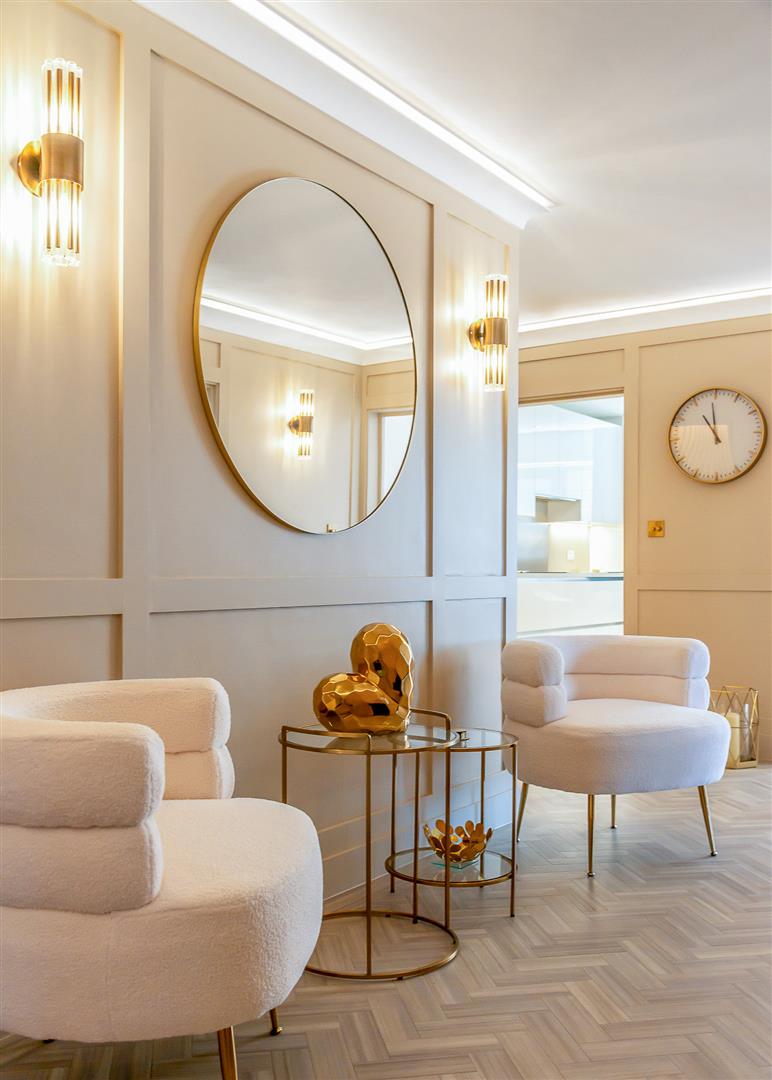 This impressive 1,200 sq ft apartment offers a superb blend of space, style, and convenience in a highly sought-after location. Designed for modern living, the property boasts a stunning 27' living room, accessed via double doors from the grand 20' panelled reception hall, creating an immediate sense of space and elegance. The living room, along with both bedrooms, opens onto a private 19' south-west facing balcony, ideal for enjoying the afternoon and evening sun.