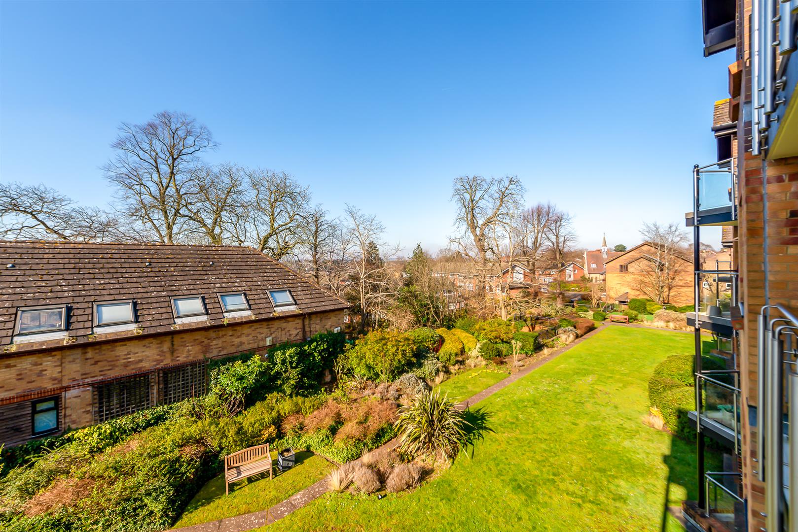 Extensive and well maintained communal grounds to rear with large area of lawn, mature beds and border, further wooded area with seating.PARKING