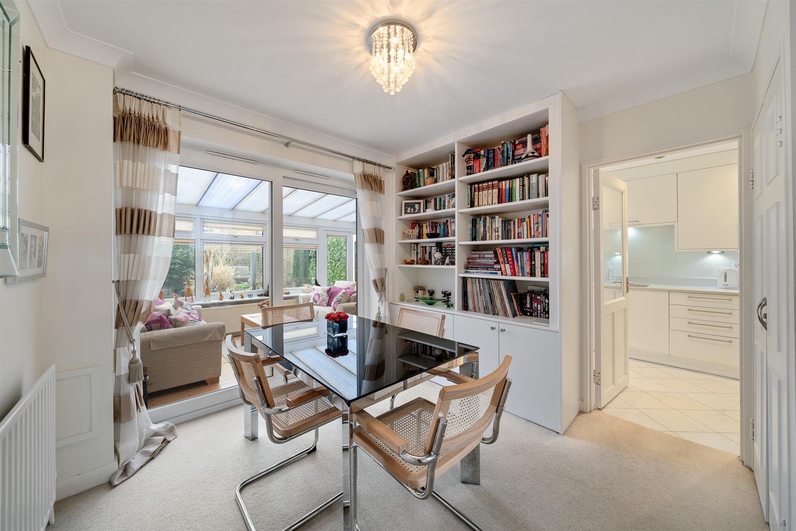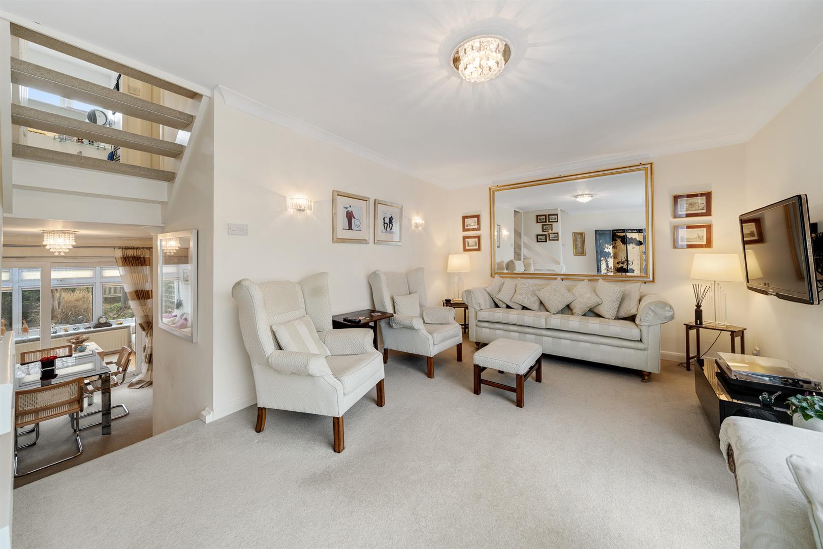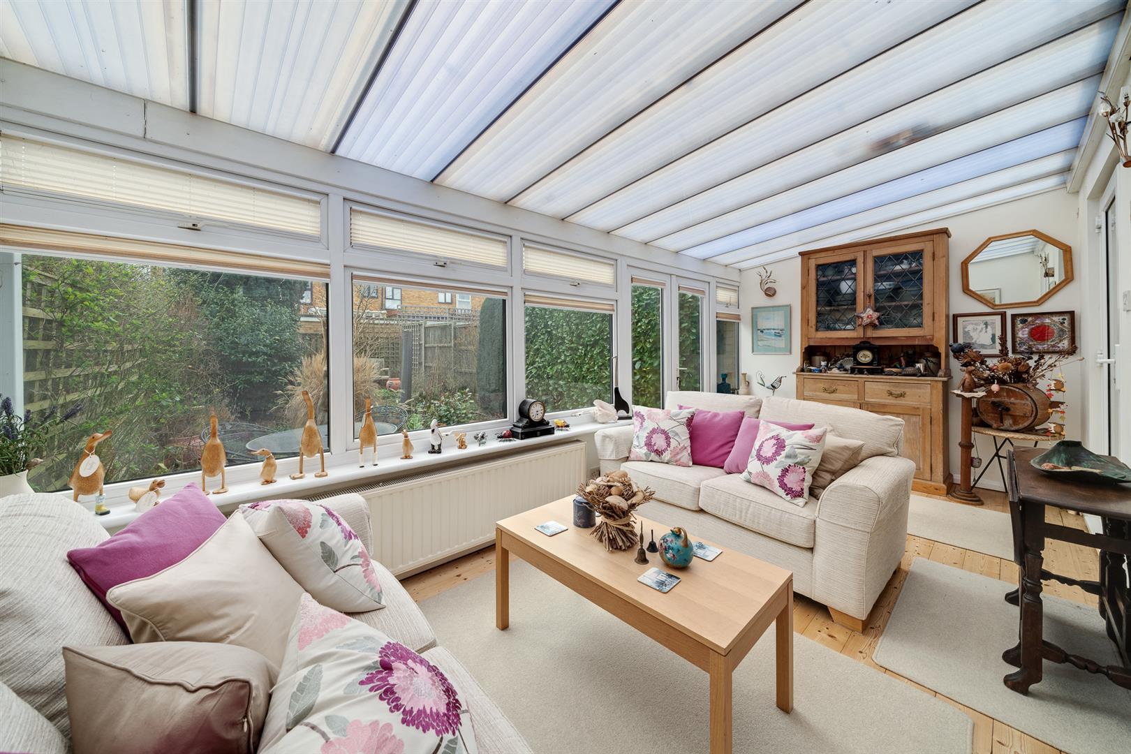 To the rear, the ground floor is arranged around a modern and well-appointed fitted kitchen with integrated appliances, complemented by a separate dining room, plus full width double-glazed conservatory overlooking the garden. A generous front-facing living room provides an excellent main reception space, filled with natural light from a wide picture window.