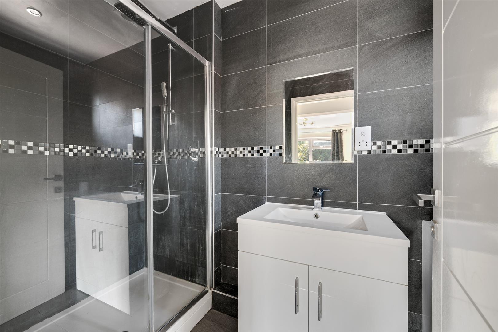 Double glazed window to side, fully tiled walls and floors, walk in shower unit, w/c and wash hand basin.BEDROOM TWO