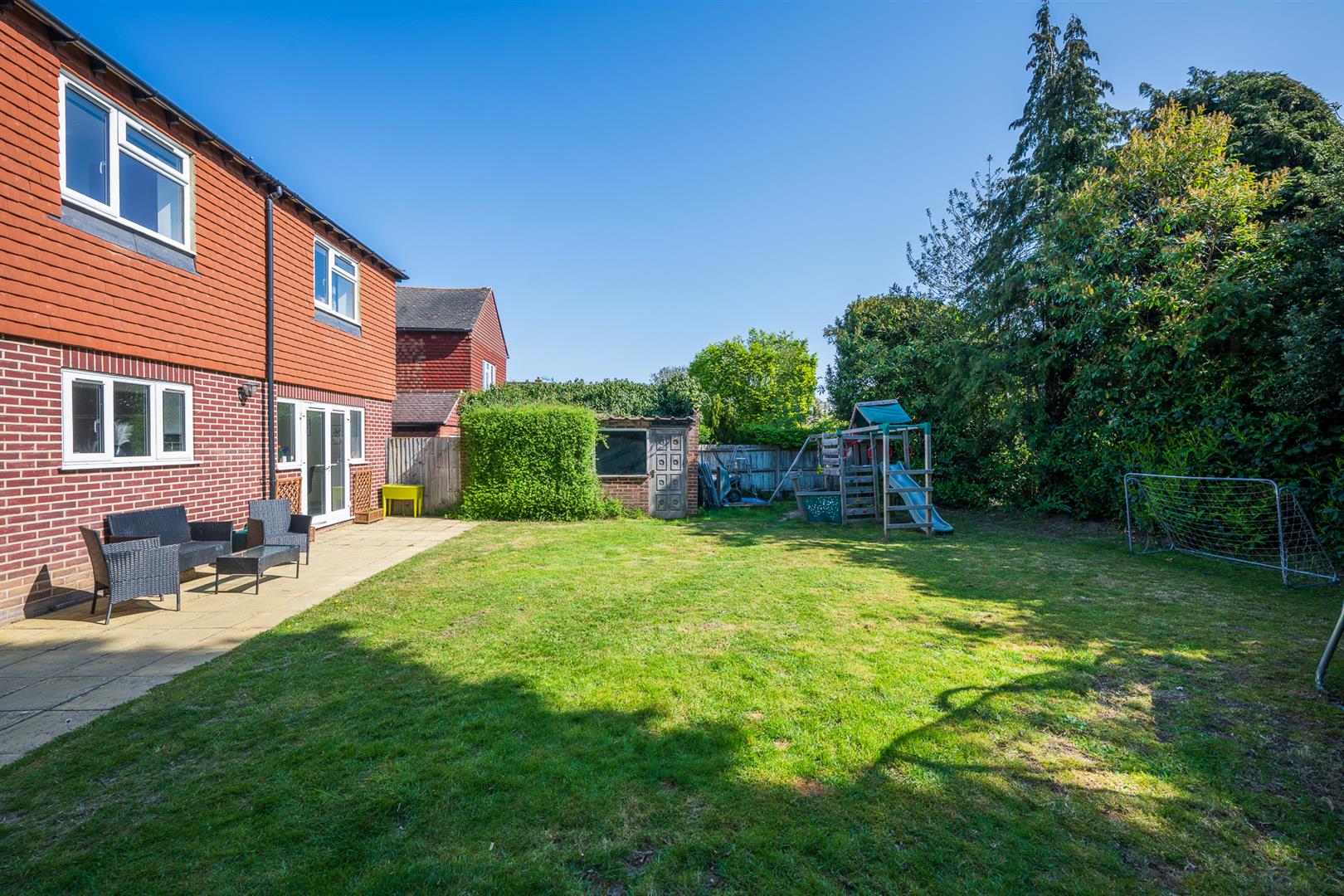 Generous corner plot garden with a large lawned area, patio, side access and access to the garden.PARKING