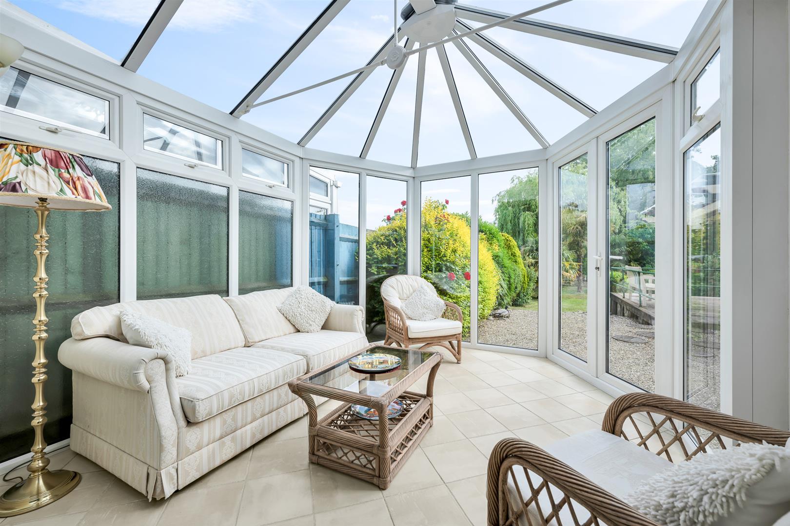 The kitchen/breakfast room is fitted with a good range of units, while the standout orangery/garden room with its striking roof lantern brings in an abundance of natural light and opens directly onto a covered decked terrace – perfect for enjoying the outdoors in all seasons. A further double-glazed conservatory provides additional garden-facing living space.