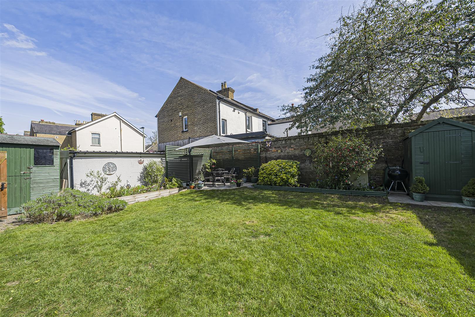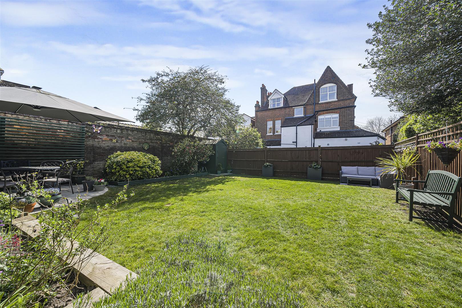 An attractive private garden to the rear featuring a main area of level lawn with mature and well stocked beds/borders. Paved patio area; outside power and lighting. Timber shed. Gate to rear leading to parking/garages.GARAGING/PARKING