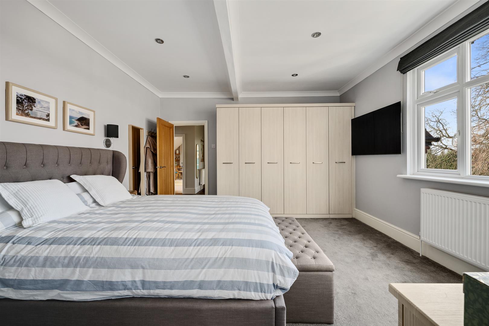 Double glazed window to side; modern and luxuriously appointed suite comprising walk-in shower featuring digital shower; fitted wash basin/vanity storage; WC; underfloor heating; heated towel rail.
