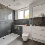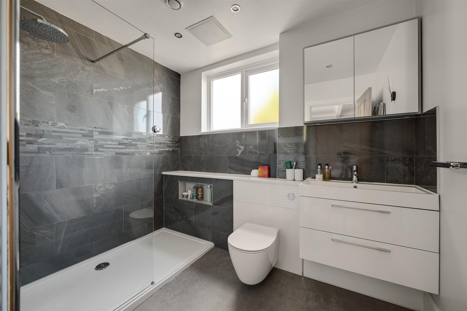 Double glazed window to rear; modern suite comprising shower enclosure featuring digital shower unit; fitted wash basin/vanity; WC; underfloor heating plus heated towel rail.