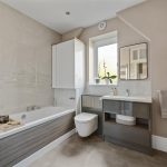 Featuring a modern and well-appointed suite comprising bath, wash basin/vanity storage; WC; underfloor heating; heated towel rail. Door to: