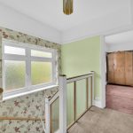 Double glazed window to rear plus part glazed door to side; wall and base units and worktop with inset sink; cupboard housing gas boiler; original built-in larder cupboard.FIRST FLOOR LANDING