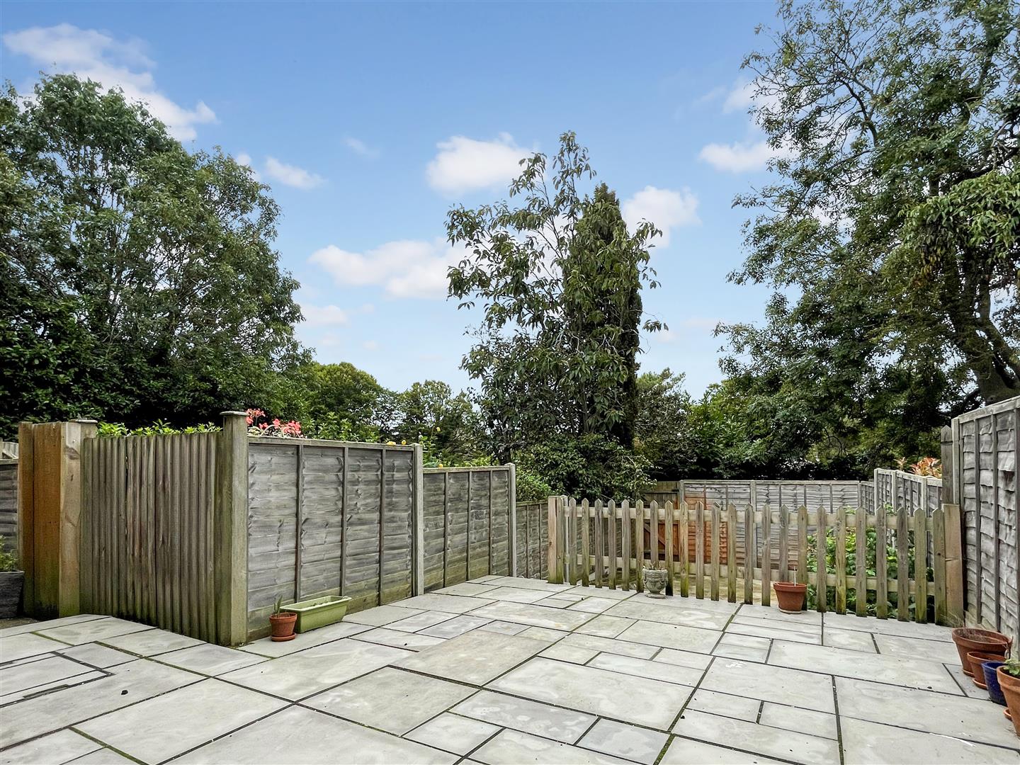 The property features gardens to both the front and rear. The rear offering a large paved patio providing a sunny southerly aspect. Rear and side access via gates.