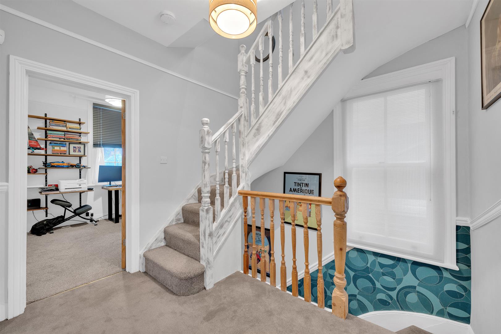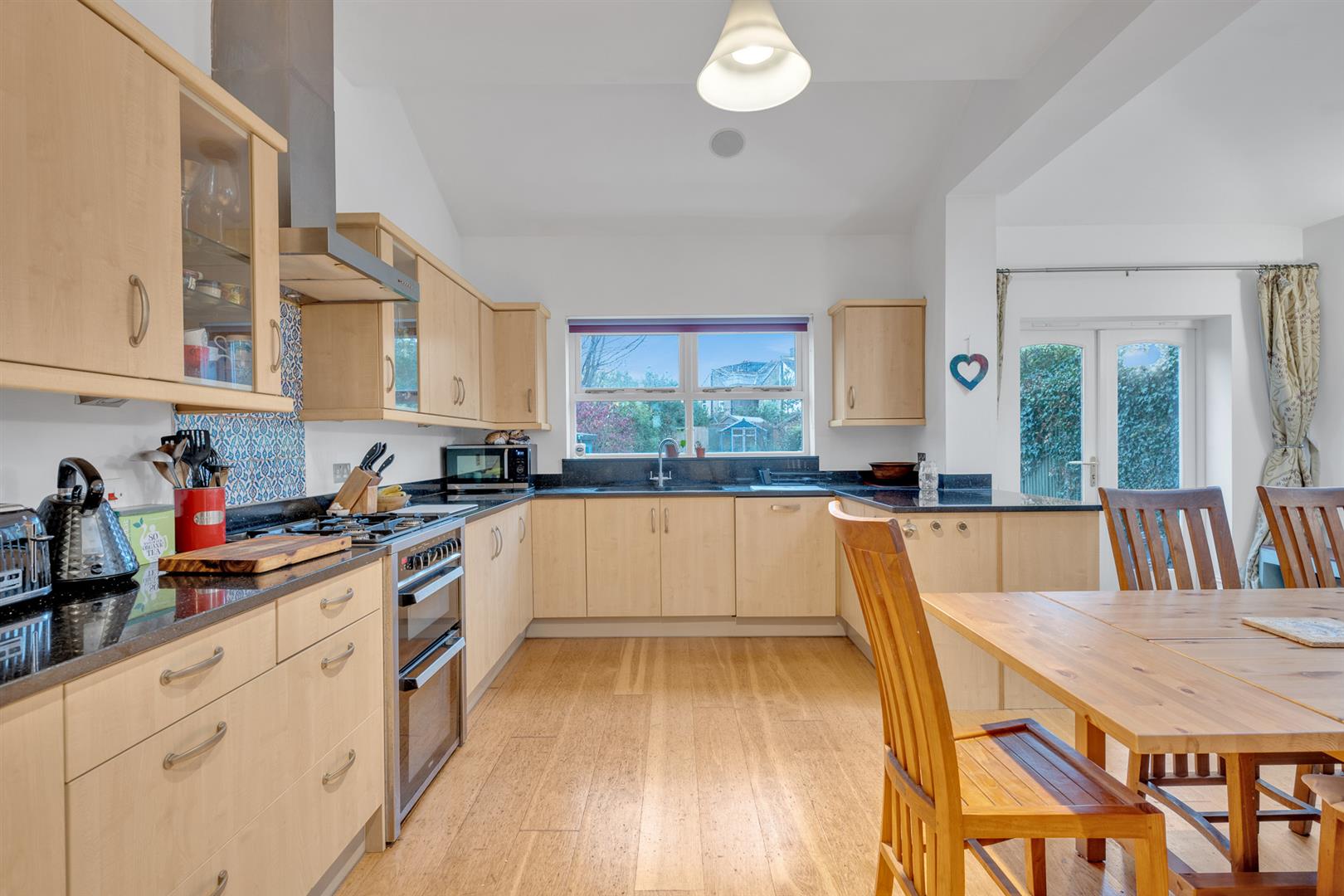 Throughout, this charming home offers a wonderful sense of space thanks to its high ceilings and well-proportioned rooms. The main living room features an attractive bay window and period fireplace, while the family room opens through to the impressive kitchen/dining room, enhanced by a vaulted ceiling with Velux skylight windows. The kitchen is fitted with a comprehensive range of units.