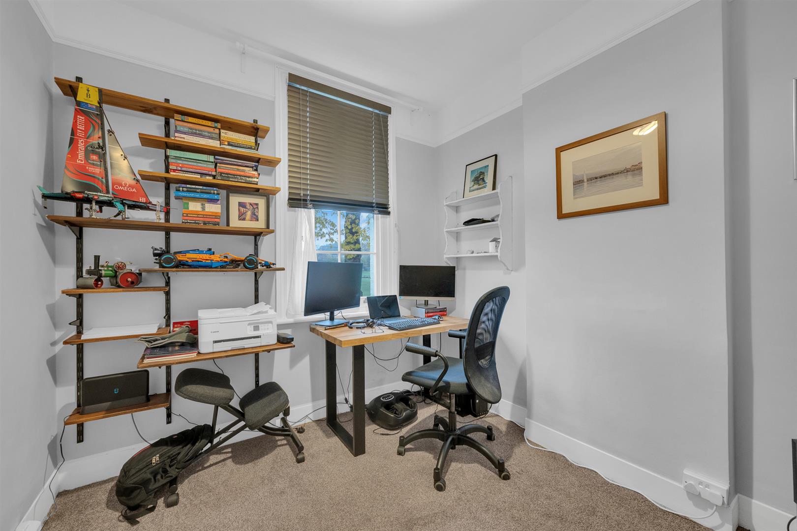 Two sash windows to the front with views over the park; two fitted wardrobes to chimney breast recesses, ornamental fire place surround with tiled hearth; radiator.BEDROOM 3 1.17m x 3.35m max (3'10 x 11'0 max )