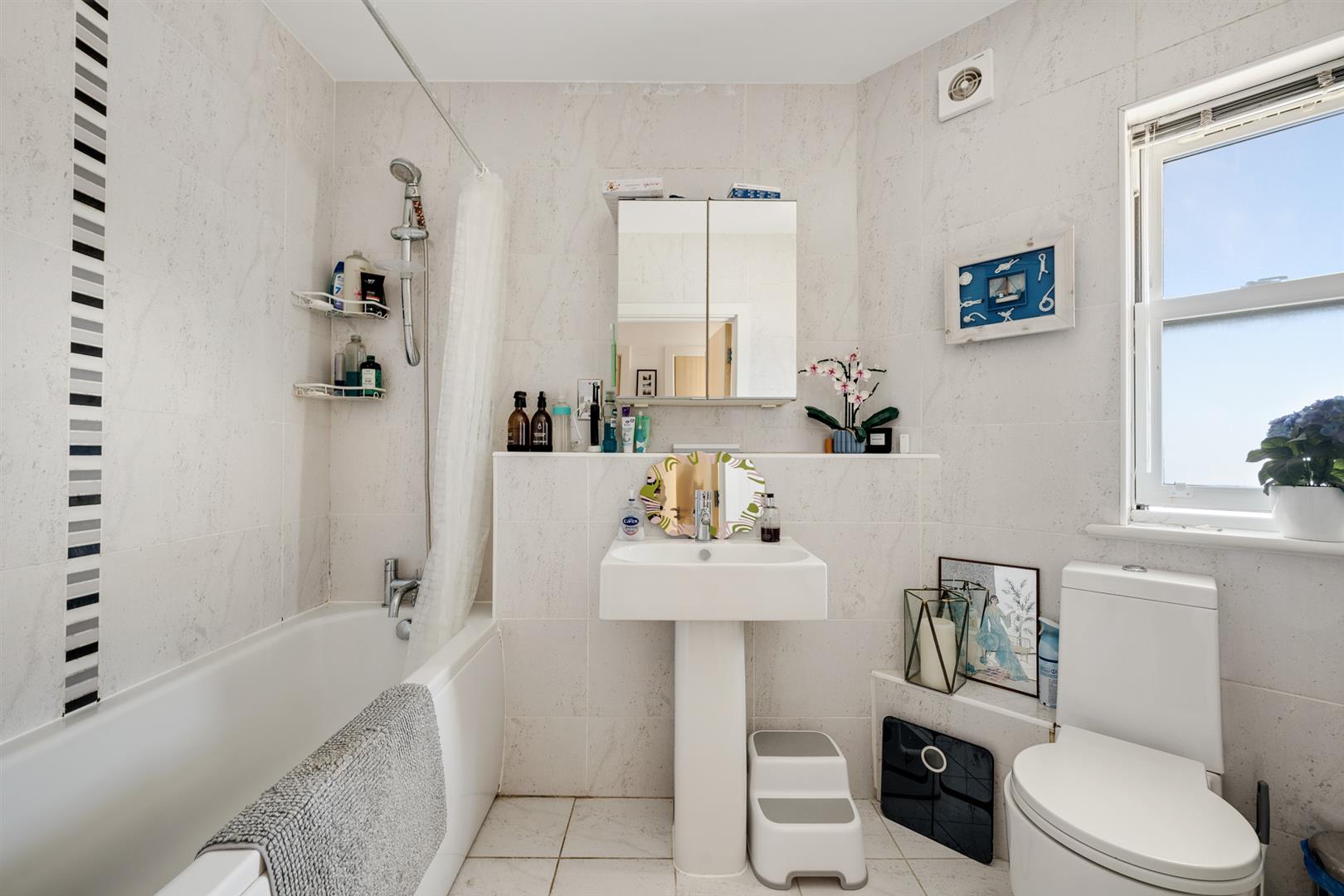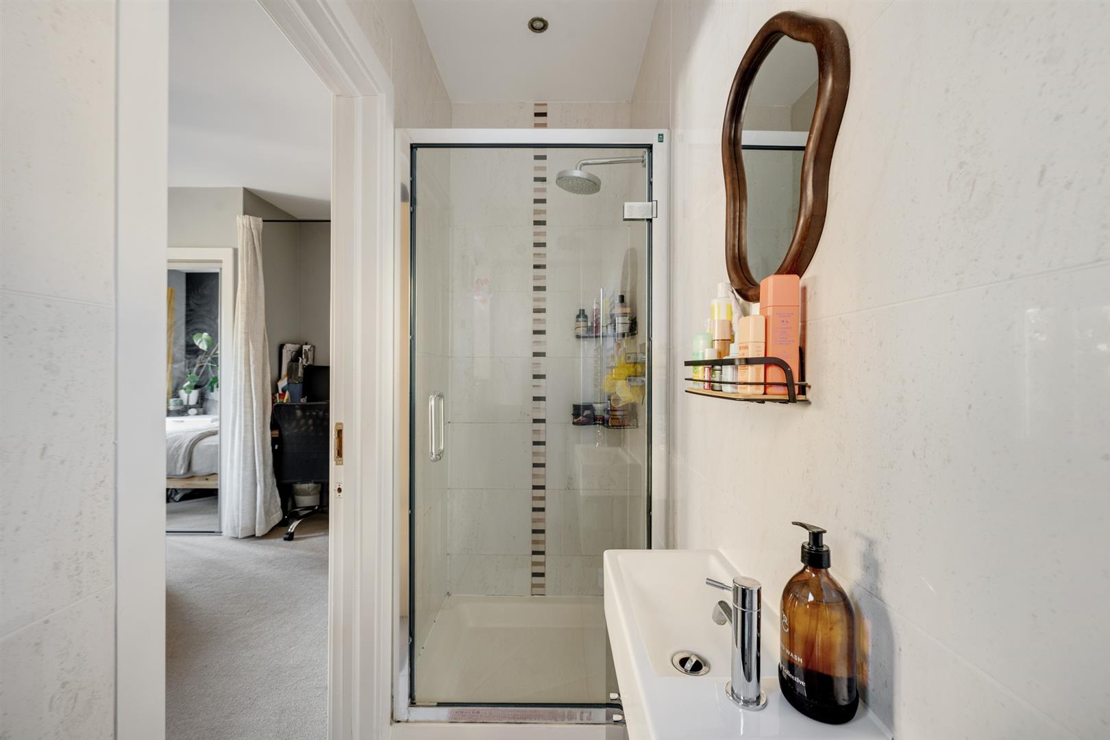 Double glazed window to front; modern white three piece suite; fully tiled walls.EN SUITE SHOWER