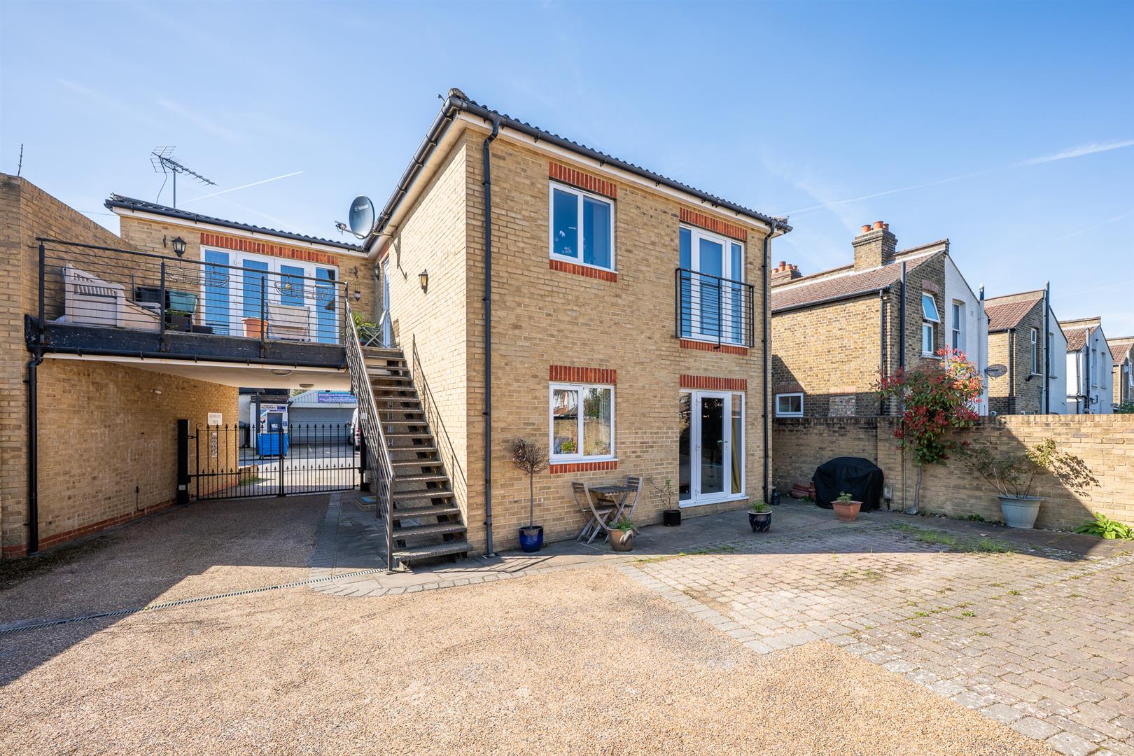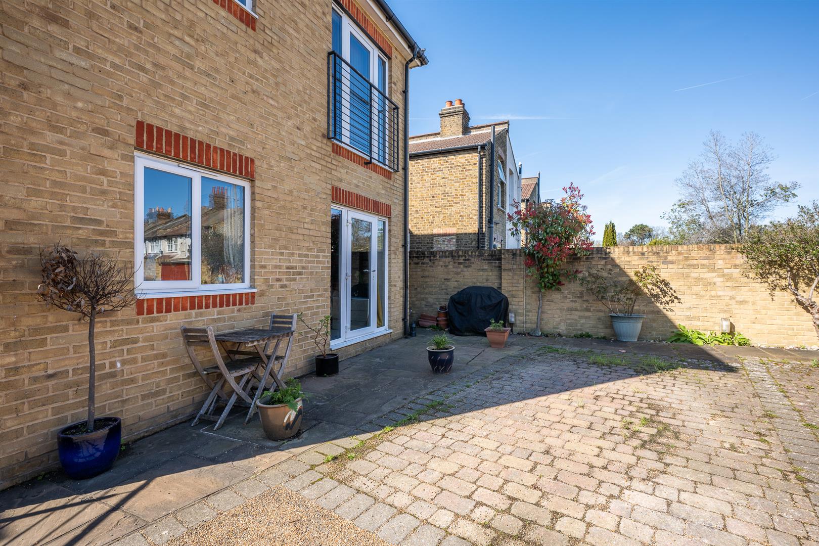 Further benefits include underfloor heating throughout, a private rear patio, and a secure gated parking space within the mews.