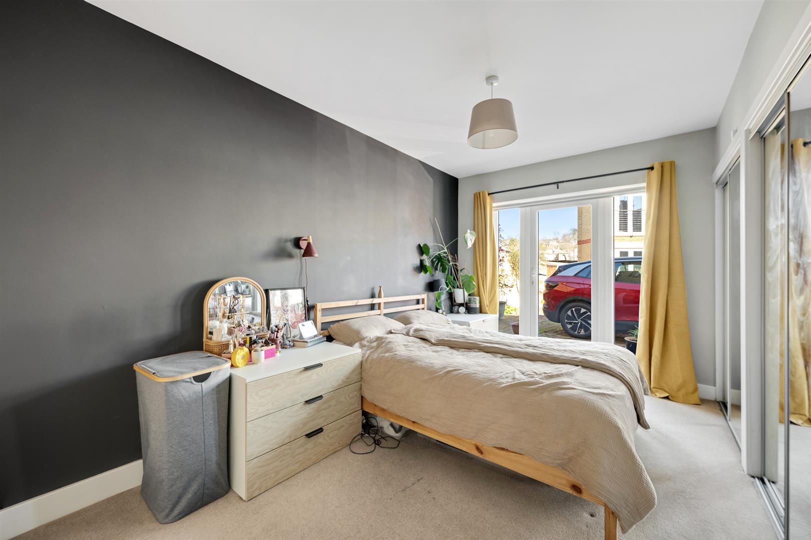 Double glazed French doors to rear leading to patio and parking area; built-in mirror fronted wardrobes and useful recess to one wall.BEDROOM 2