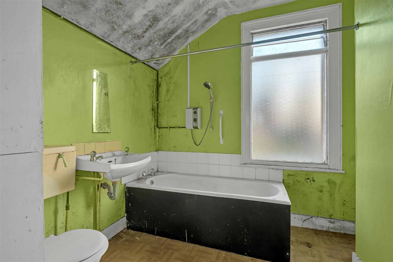 Requiring complete updating throughout, the property currently provides two well-proportioned bedrooms to the first floor, along with a family bathroom, while the ground floor offers two separate reception rooms, the kitchen, plus an additional shower/wet room.