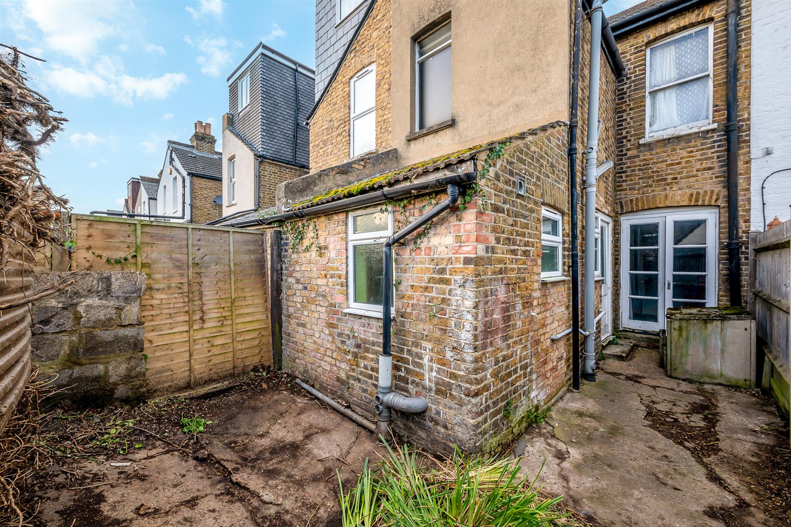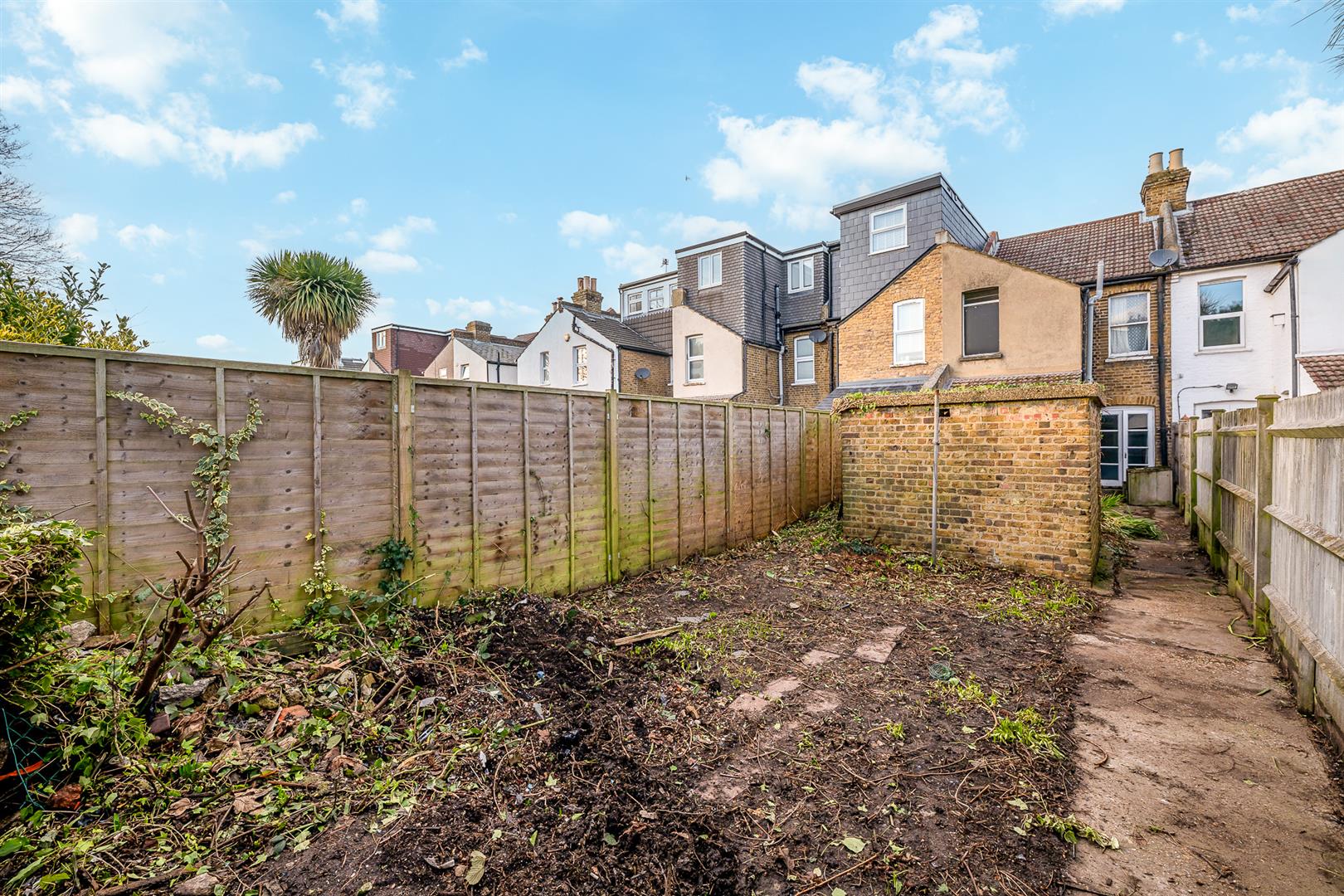 South facing rear garden, in need of attention. Air raid shelter which can be used for storage.PARKING